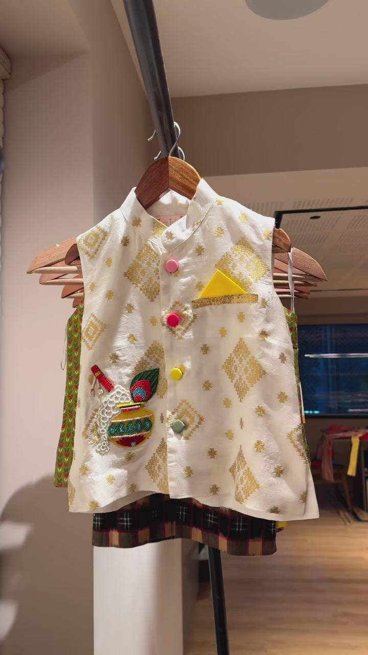 White Brocade Jacket with Matka Embroidered Motif with Kurta Set